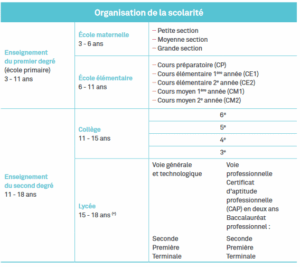 Source : L’enseignement scolaire en France – Eduscol